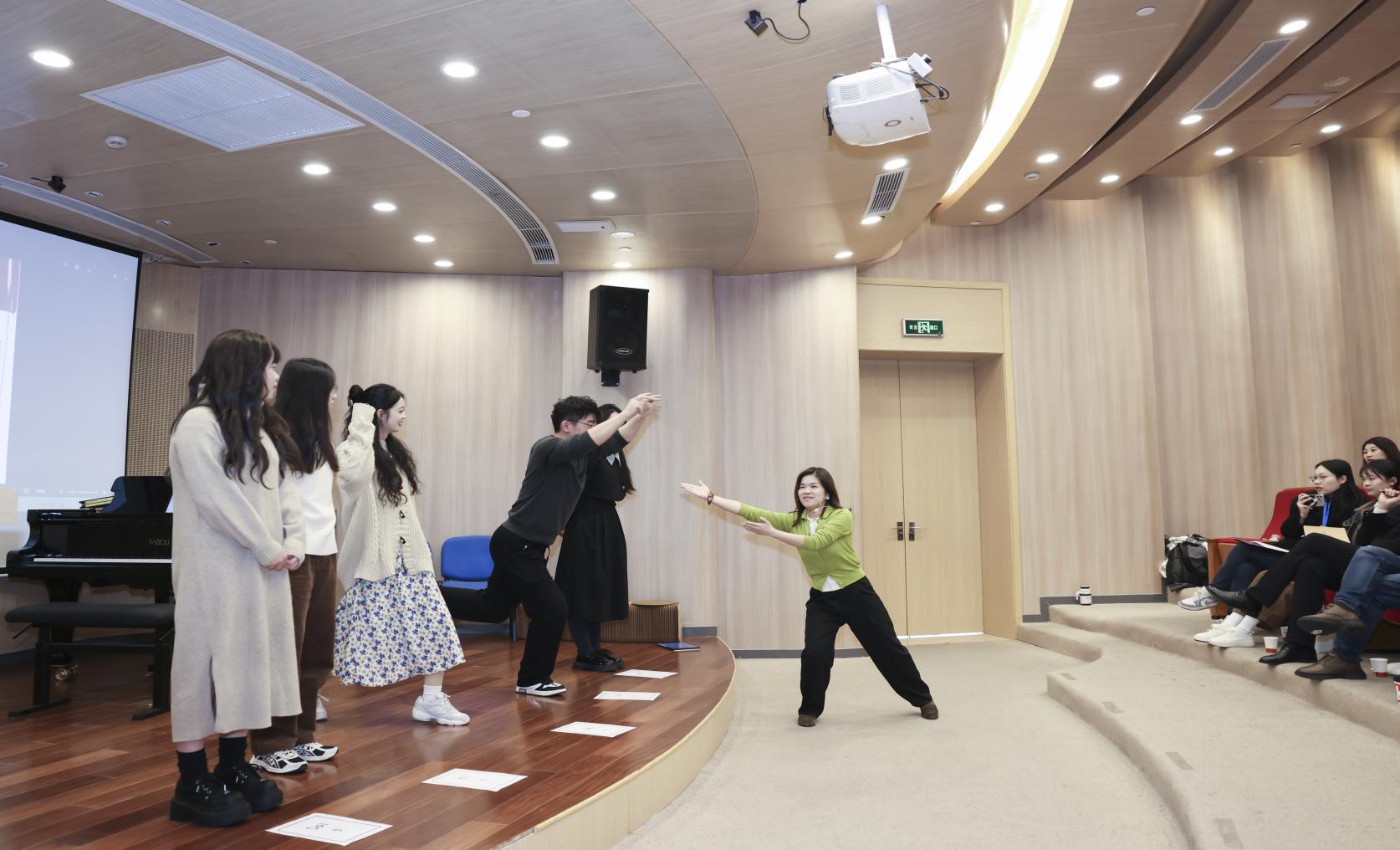 随后,成人a片 钢琴系李春老师以“探索钢琴即兴创编在课程教学中的融合运用”进行了课程展示。她认真授课,带着学生们一同进行演示,呈现了一场别开生面、精彩绝伦的现场教学。