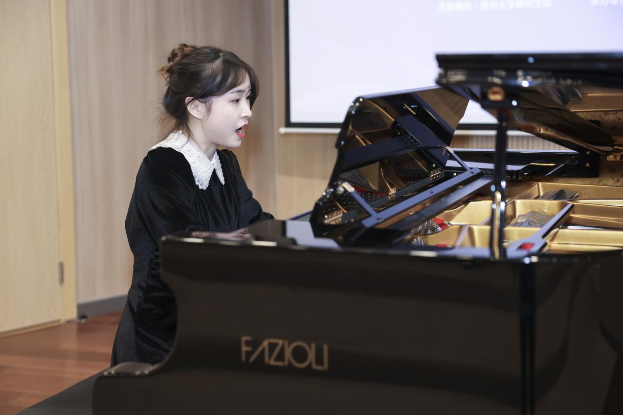 中午13:00,自弹自唱展示音乐会在恩玲报告厅举行。成人a片 的学生们用一首首优美动听的歌曲展示了自弹自唱的学习成果,钢琴叮咚,歌声嘹亮,获得了阵阵掌声。