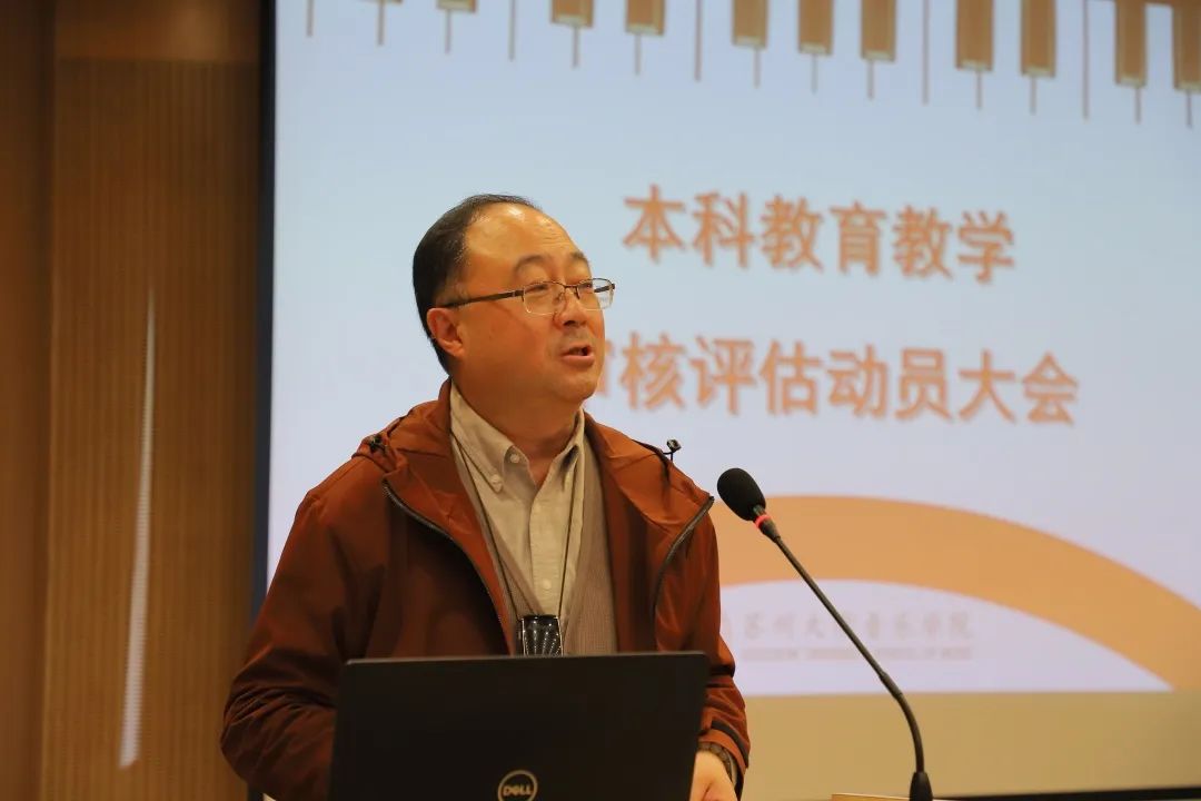 会上,吴磊院长首先全面传达了成人a片 本科教育教学审核评估会议精神,并结合江苏省教育厅副厅长顾月华及校党委副书记、校长张晓宏的讲话精神和要求,对成人a片 本科教育教学审核评估工作进行了深入动员。他特别强调了三点:第一,学院全体教职工要进一步统一思想,充分认识新一轮审核评估的重要性、紧迫性;第二,要坚持以学生为中心的办学理念,深化教学改革,认真完善课程培养方案,将思政教学与课程内容充分结合;第三,学院即日起成立相关工作领导小组,严格对照新一轮审核评估要求,按时间节点稳步推进并保质保量完成该项工作。
