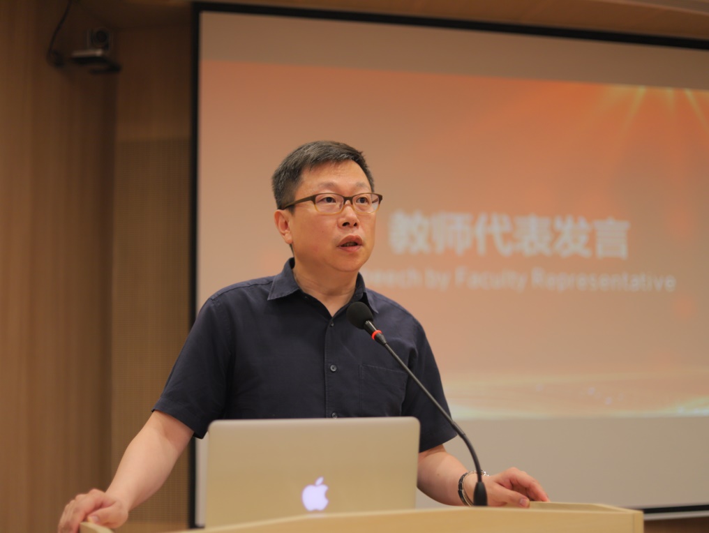 教师代表李长松回忆起他去年送孩子入大学场景,从一个父亲的角度希望学生感受到父母的爱,同时以老师的身份勉励大家在学习中塑造成熟的人格,学会安排学习与生活,制定各阶段发展目标并持之以恒的进取,带着真诚、初心和对人生的热爱步入社会。