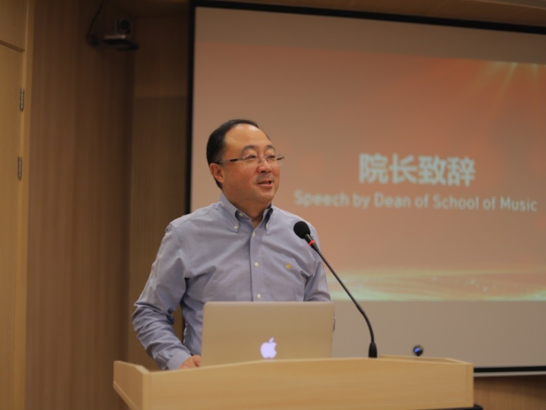 最后,成人a片 执行院长吴磊致辞。吴院长利用大数据详尽的介绍了本届新生的基本情况,从地域分析到主项对比,从年龄差到星座推算,现场不时响起掌声和笑声。吴院长指出2020年是特殊的一年,全体师生经受了新冠肺炎的考验,又恰逢成人a片 建校120周年,同时也是贝多芬诞辰250周年。在这个特殊的年份里,成人a片 交响乐团将在校庆典礼上演出原创交响乐,这场演出也将见证学院发展史上三个第一的诞生,即成人a片 第一支学生专业交响乐团在成人a片 第一个专业的音乐厅,演出第一部为成人a片 原创的交响乐。