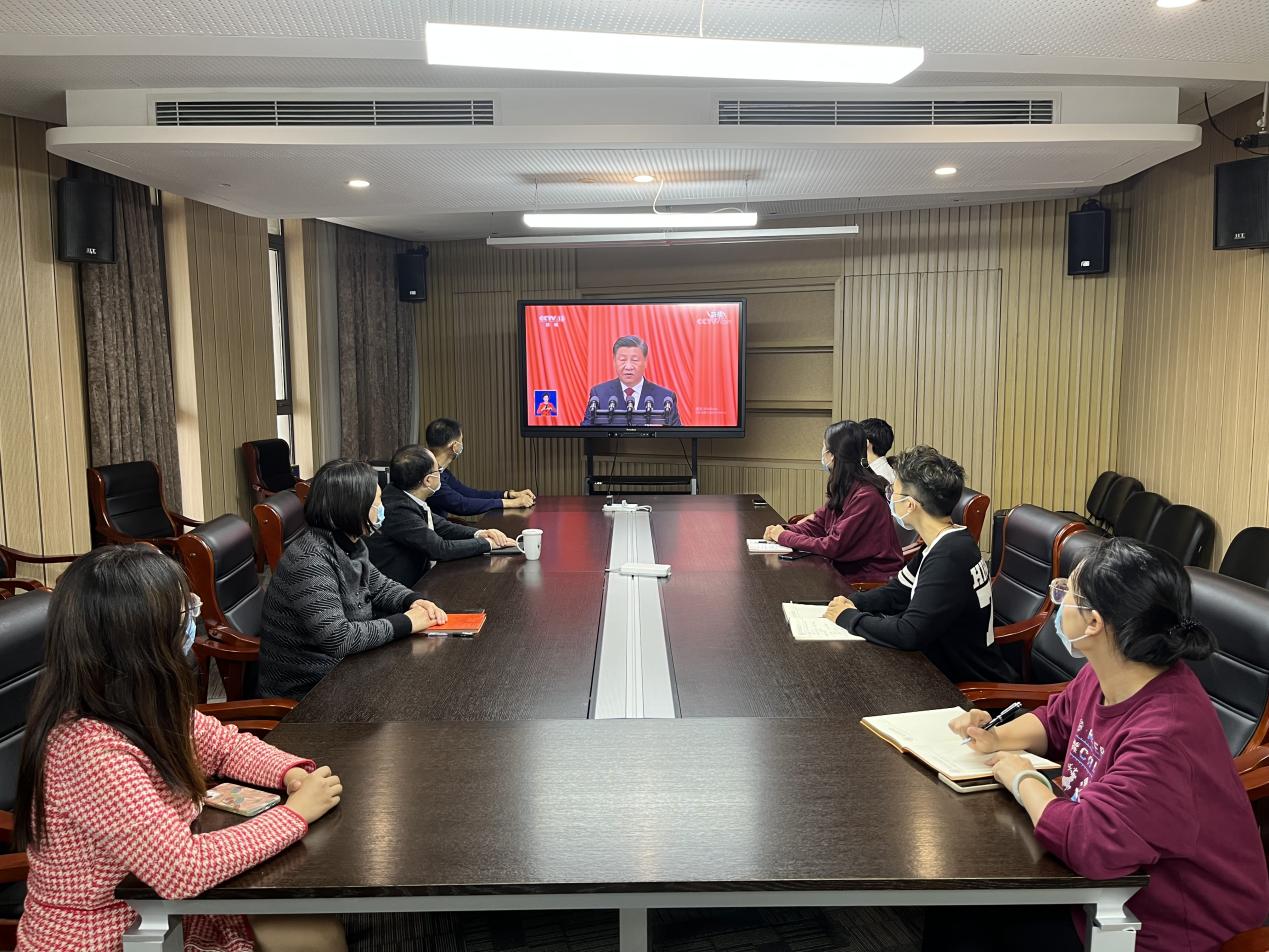 疫情期间驻守学院的领导班子成员及全体辅导员和行政团队教师在505号楼会议室一同收看收听党的二十大报告。学院其他教师、学生也通过各种形式认真收看收听盛会开幕的现场直播。