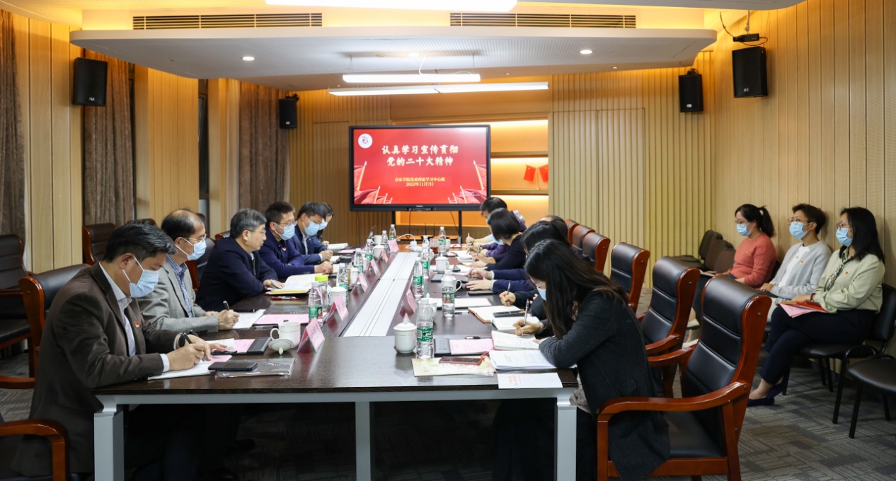 为更好地学习宣传贯彻党的二十大精神,推动学院各项事业高质量发展,11月7日下午,学院党委理论学习中心组召开集中学习会,专题学习党的二十大报告,校党委书记江涌带领巡学旁听小组对学院党委理论中心组学习开展了巡学旁听。