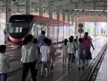 为探索轨道交通领域的奥秘,解密有轨电车背后的世界。实践团带领暑托班小朋友前往苏州高新区参观了有轨电车,了解有轨电车的历史,讲解员细致认真的讲解了有轨电车的建设、使用情况、发展状况等,随后小朋友们来到有轨电车站台,体验乘坐的快乐。