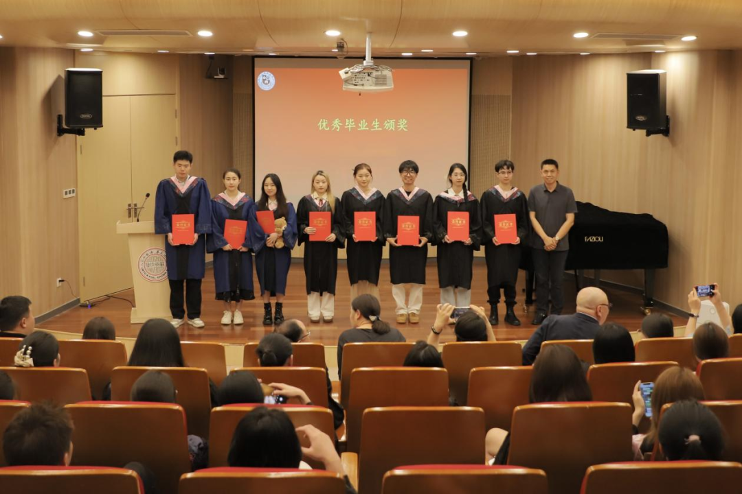 刘晶晶老师代表全体教师和同学们回忆了大学四年的点点滴滴,他勉励毕业生们要牢记心中的热爱与坚持,无论将来从事什么职业,都要去拥抱世界、服务社会,绽放出属于自己的独特光彩!
