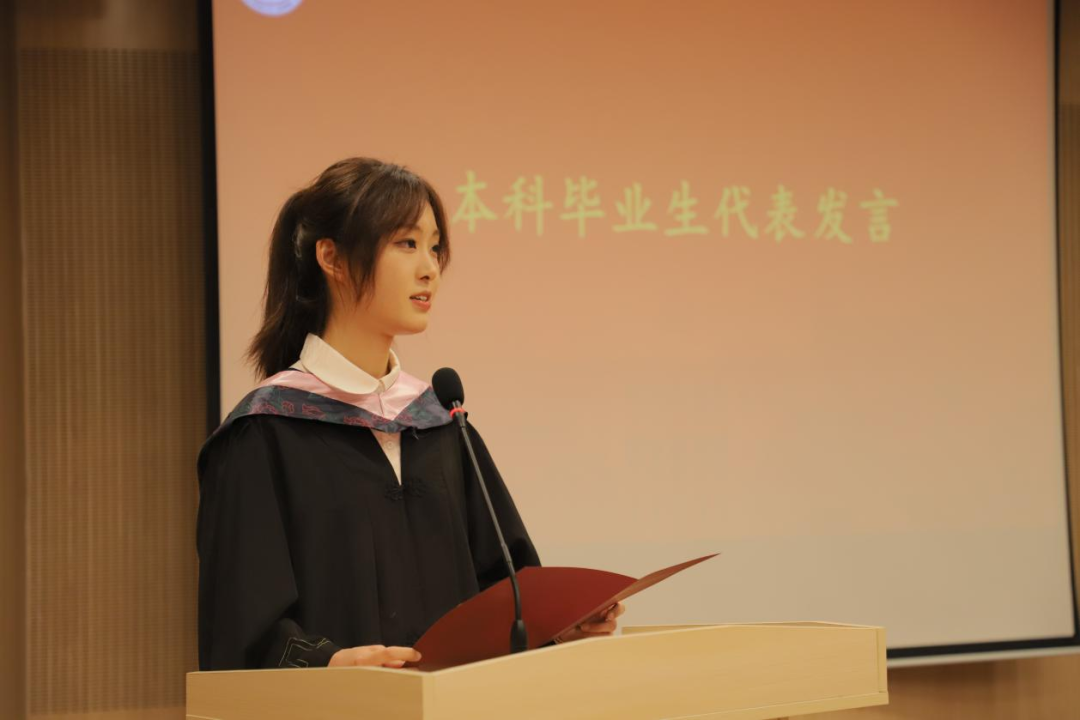 2020级本科毕业生付绎如代表全体本科毕业生对母校的培养表示感谢,她表示心有所信,方能行远,他们将带着学院的殷殷期望和祝福,挂起新风帆,踏上新征程。