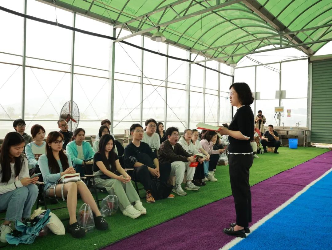 参观农场收获大。莘园幸福农场负责人带领师生们参观了农业基地无土栽培区和联动有土种植区,展示了基地的整体种植规划。在无土栽培展示区,工作人员详细介绍了无土栽培技术的原理、优势,展示了栽培区小番茄、黄瓜、贝贝南瓜、西瓜等农作物。在这里,大家不仅欣赏了田园的美景,还收获了丰富的农业知识,对当下的农业技术与发展有了更深的了解。