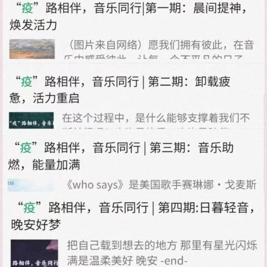 除了为患者带来音乐疗愈,我们同样积极致力于将“音愈心灵”的理念和实践带给更多需要的人们。包括疫情期间的音乐推送、云中交响乐、“一起音乐吧”系列活动、“声如夏花”主题音乐会等活动。