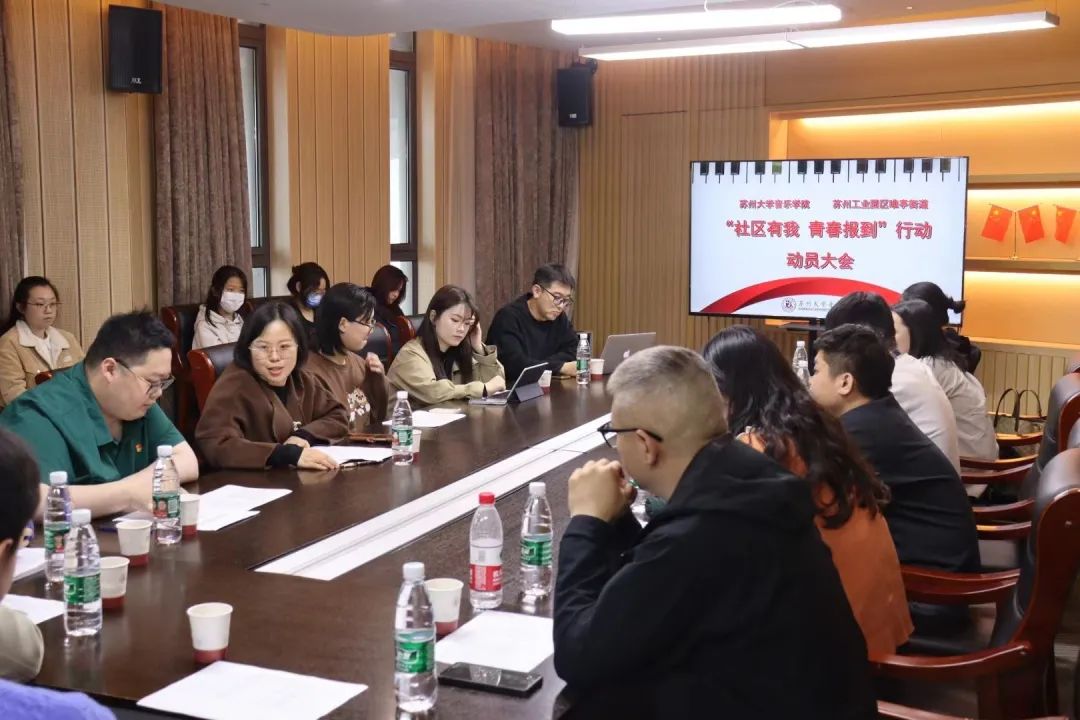 4月26日下午,“社区有我,青春报到”行动动员大会在成人a片 505号楼二楼会议室举行。成人a片 党委副书记、副院长杨燕,苏州市工业园区唯亭街道团工委委员周玮杰,唯亭街道十个社区团支部书记以及学生志愿者代表出席此次大会,大会由学院团委书记于存洋主持。