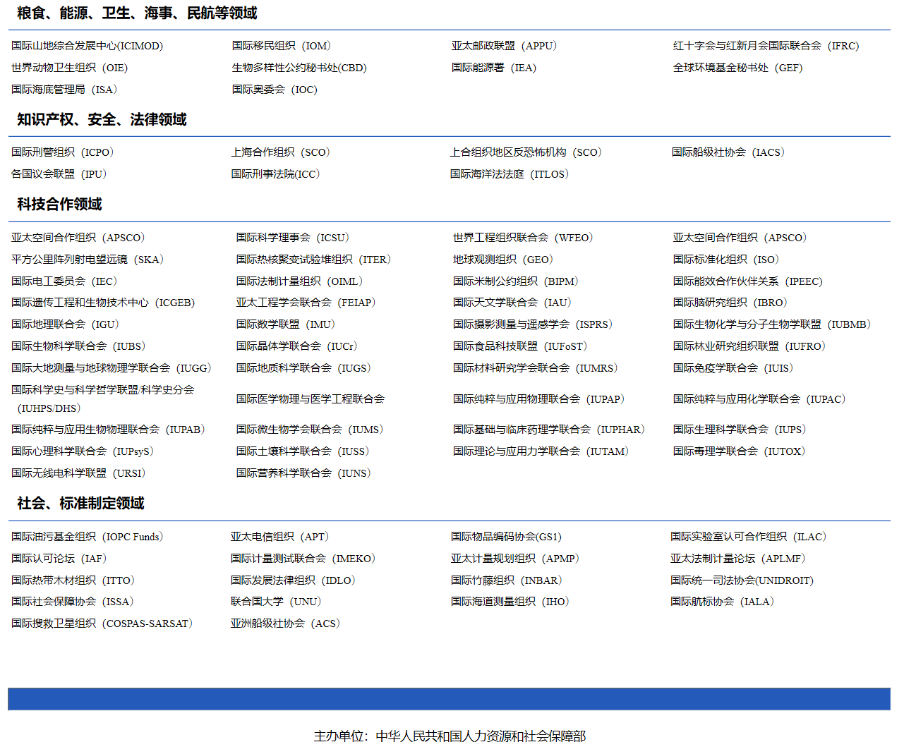 国际组织的认定参考国家人力资源和社会保障部网站上的名录,网址链接为