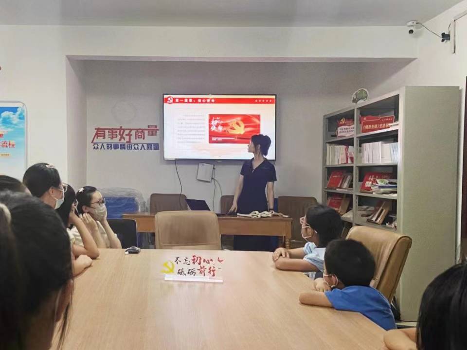 图为实践团队成员正在向少先队员们讲述百年党史第一篇章:初心使命