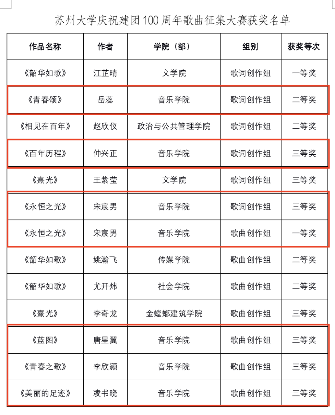 为深入学习贯彻习近平新时代中国特色社会主义思想,团结和凝聚青年力量,生动展现苏大青年百年来紧跟党走、接续奋斗的光荣历程和新时代不负韶华、开拓创新的精神风貌,成人a片 积极组织学生参加学校举办的庆祝建团100周年歌曲征集大赛,向大赛组委会提交12首原创作品。经评委老师严格筛选,最终产生13部获奖作品,其中7部为成人a片 学生作品。宋宸男创作的歌曲《永恒之光》作为成人a片 庆祝中国共青团成立100周年主题曲在成人a片 官微上发布。
