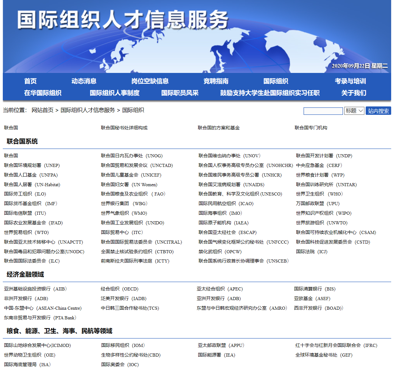 国际组织的认定参考国家人力资源和社会保障部网站上的名录,网址链接为