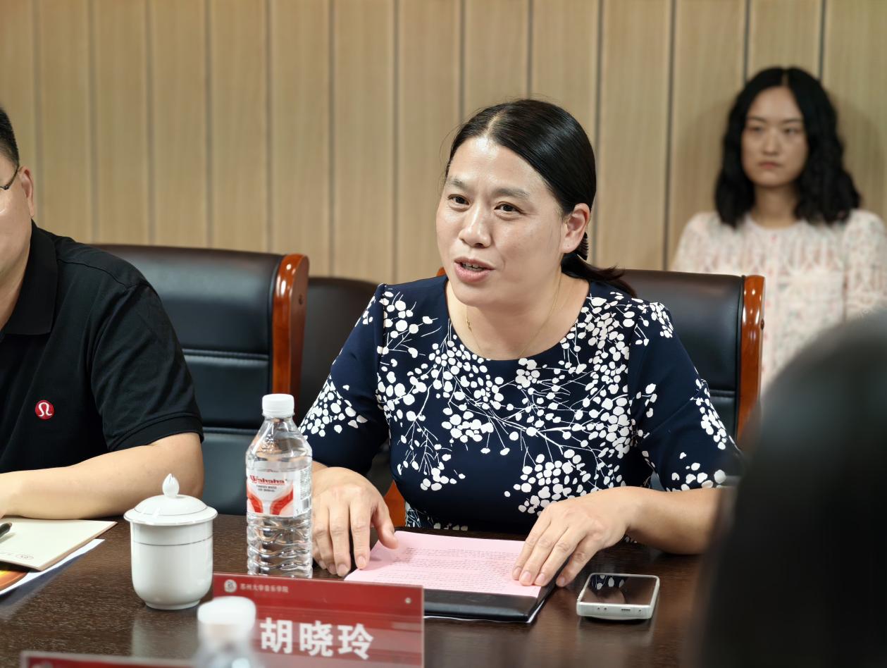 胡晓玲书记代表学院领导班子向朱莉一行莅临学院表示热烈欢迎,并详细介绍了学院的师资、课程体系及场馆保障,表达了学院对唐仲英基金会本次项目推进工作的重视及后续双方在文化艺术等领域深度合作的信心。