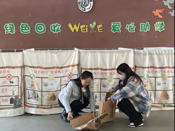 (实习生孔维玮和陆琪参与景城学校“绿色回收”公益实践活动)