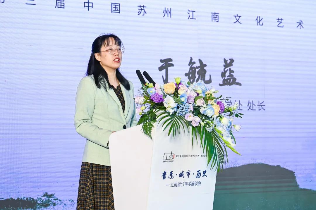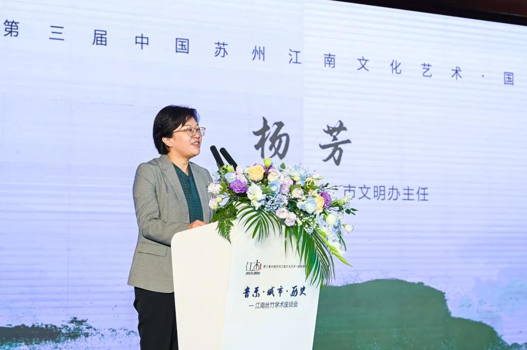 28日上午的开幕式上,中共苏州市委宣传部副部长、市文明办主任杨芳与成人a片 人文社科处处长于毓蓝代表市委宣传部与成人a片 分别致辞。在致辞中,杨部长提出全力打响“江南文化”品牌,致力于为江南丝竹的保护与传承发展提供良好的环境,连通传统与新时代、连通人民与艺术家,为江南丝竹的未来献计献策,共谋发展。