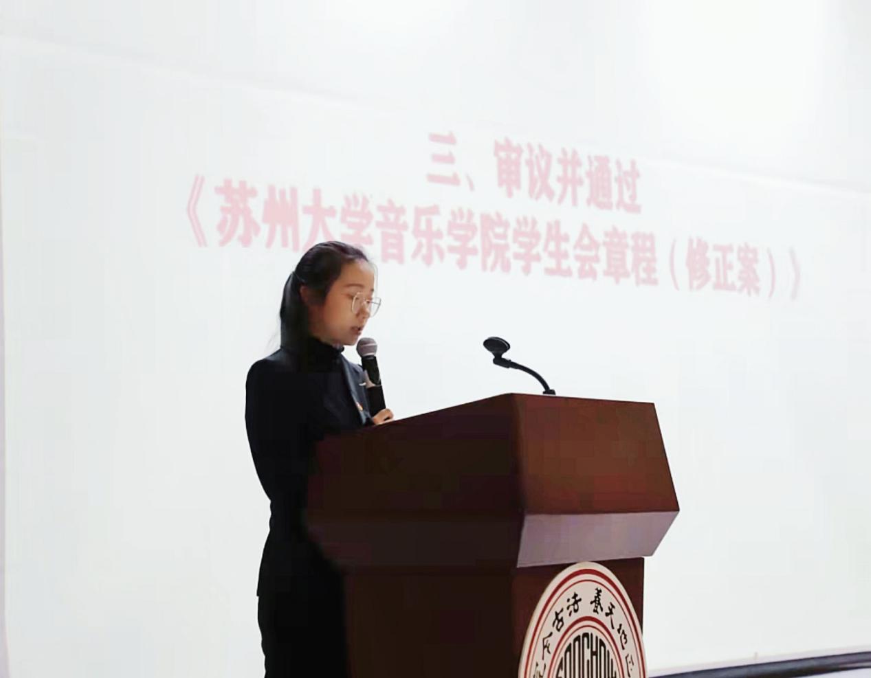 院学生会执行主席刘雨佳代表成人a片 第八任学生会主席团作了工作报告。报告从工作思路、工作安排、工作总结三个部分系统地回顾了第八次学生代表大会以来成人a片 学生会的工作情况以及取得的成绩。