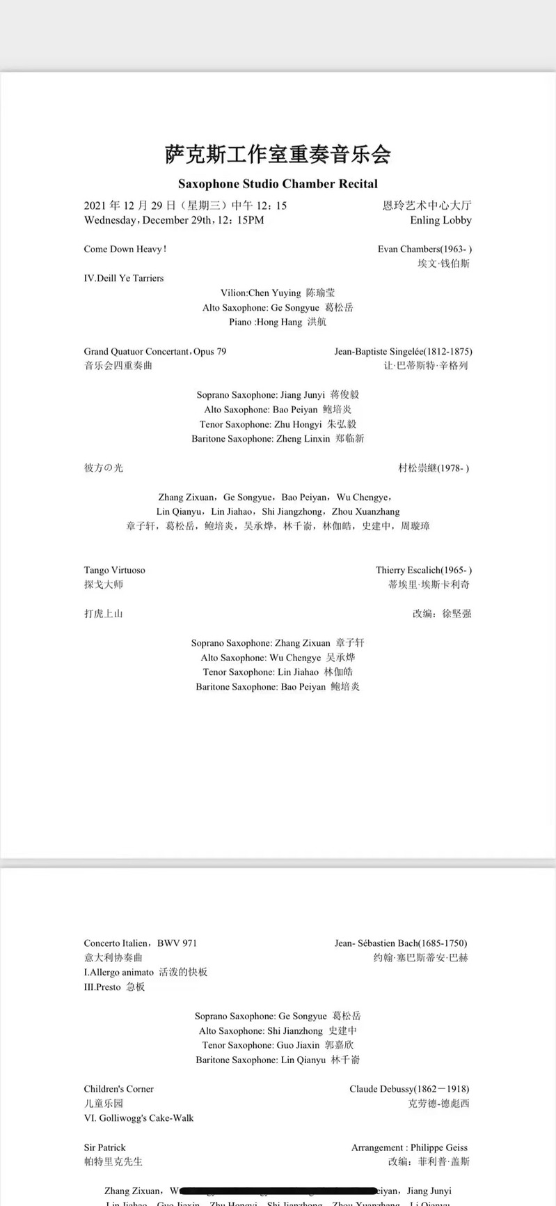 演出预告:萨克斯工作室重奏音乐会