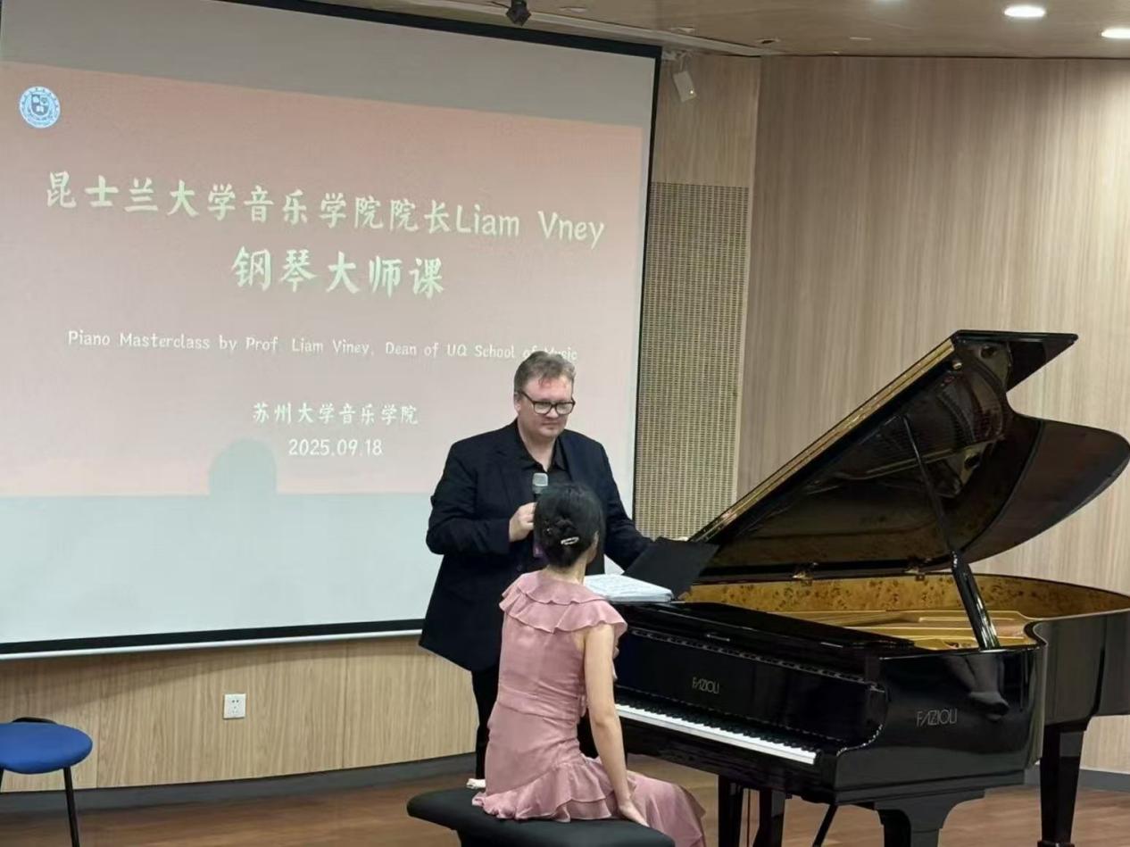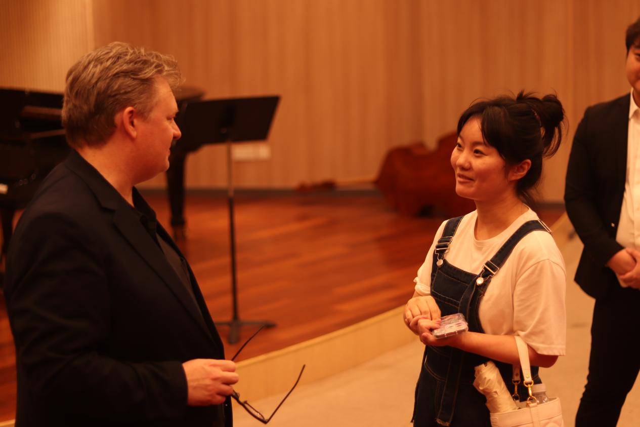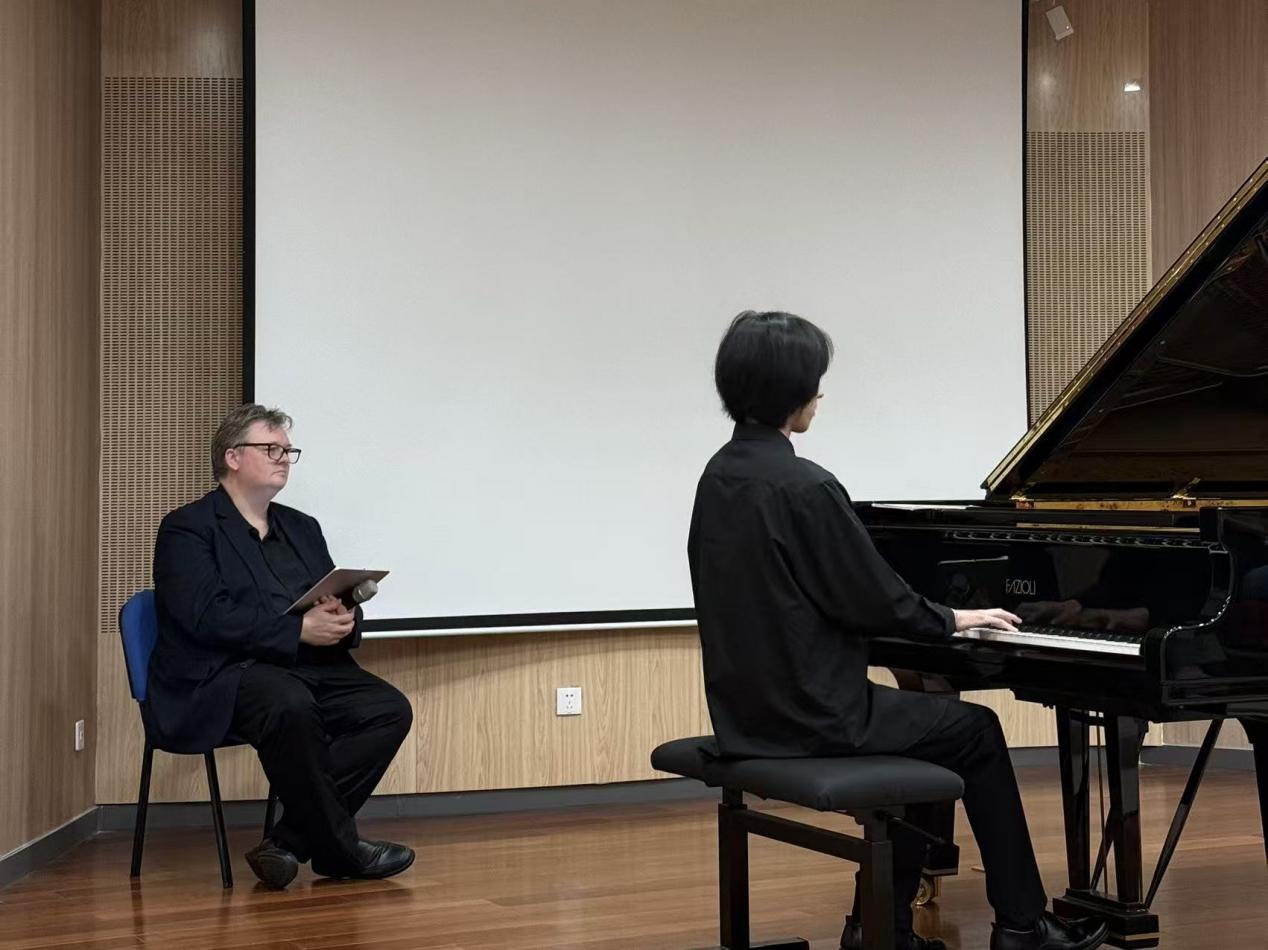 音乐会结束后,Liam院长还举办了一场高水平的大师课,为学院优秀学生分享了专业的音乐知识和演奏技巧,拓宽了成人a片 学子的国际化视野。