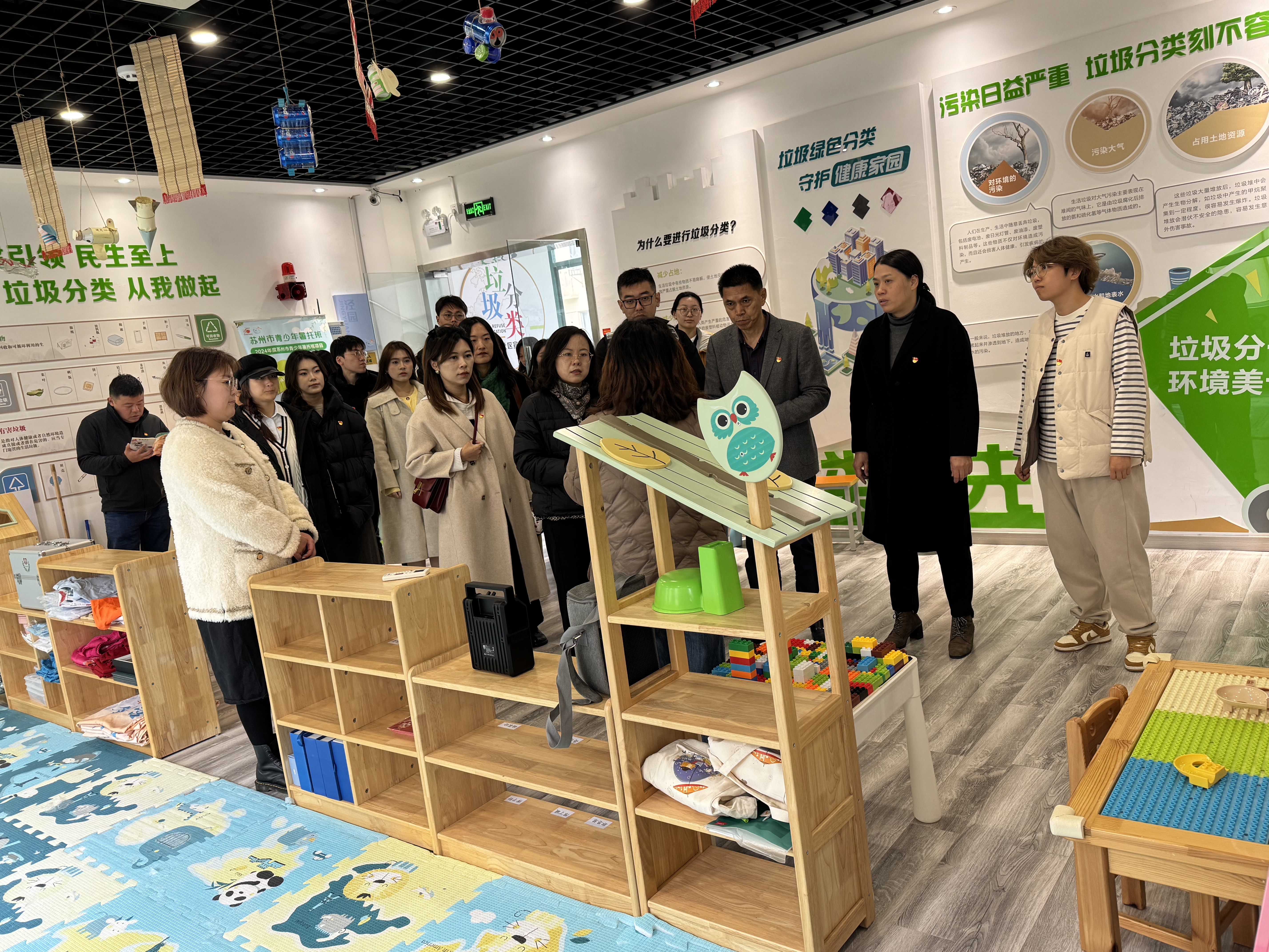 参加活动的师生们首先来到苏州工业园区娄葑街道泾园南社区,在社区司主任的带领下,大家走示范点位,看发展成效,学改革理念,实地参观“苏州市儿童友好社区”、园区“飞线整治”“车库治理”示范社区,了解社区推进基层治理的特色做法和工作经验。泾园南社区党委充分发挥“幸福泾园”“红色引擎”作用,推进高效能治理与高品质生活同频共振,构筑共建共治共享社会治理新格局,有力打造了党建引领基层治理的“先锋样板”。