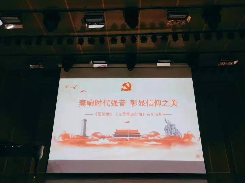 音乐与党课互融,历史与现实相映。2019年11月26日下午两点,在601号楼音乐厅成人a片 唐荣副教授为成人a片 全体党员带了一堂题为“奏响时代强音,彰显信仰之美——《国际歌》《义勇军进行曲》音乐分析” 的音乐党课。
