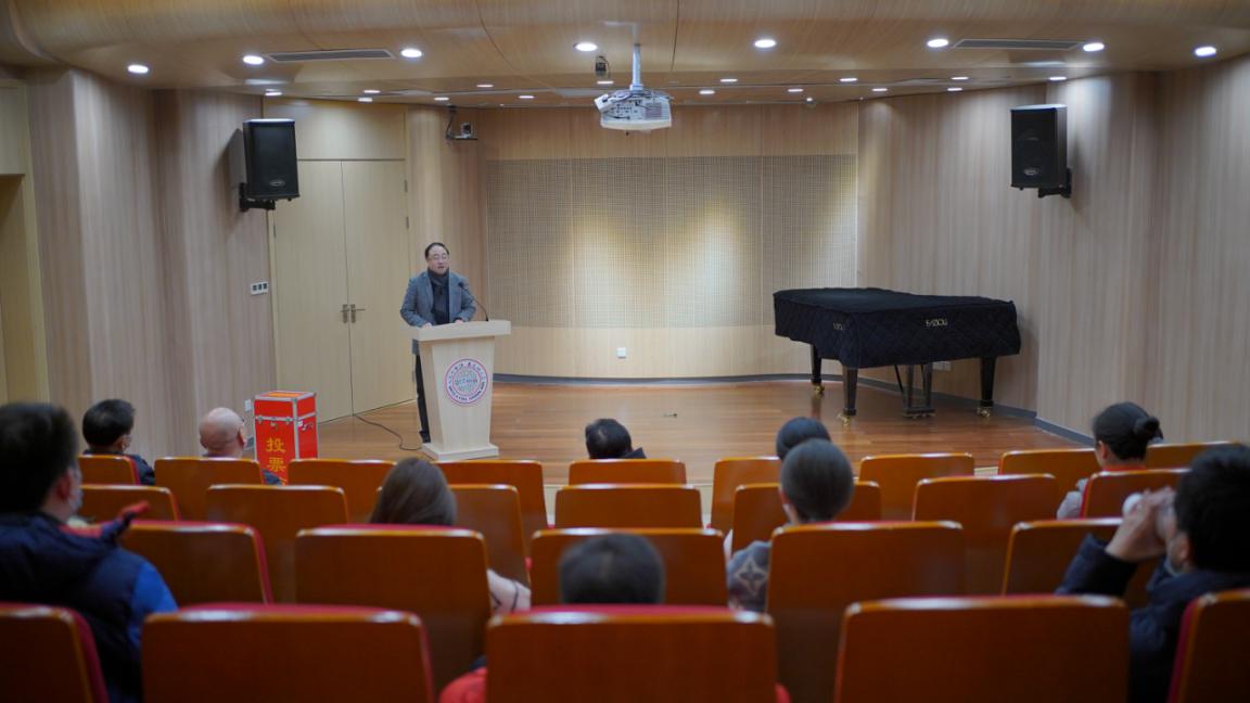 会上,院长吴磊首先代表学院领导班子进行述职,报告2020年工作情况。吴院长在领导班子述职报告中指出,2020年,学院领导班子深入学习贯彻习近平新时代中国特色社会主义思想和党的十九届四中、五中全会精神,以建设“高水平、有特色、国际化的一流成人a片 ”为目标,团结带领学院师生,勇于改革,锐意进取,在学院各方面的工作都取得了可喜成绩。一是真抓实管,党建工作领航。学院落实全面从严治党主体责任和监督责任,结合学院实际,认真完成了各项工作。二是提质增效,学科与科研工作再突破。本年度学院科研创历史新高,学院教师共发表核心论文9篇,获得4个省部级科研立项,获得6项科研成果奖励。三是人才培养和师资队伍建设。成人a片 坚定不移引进优秀教学资源,助力打造一流教学团队。引进7名博士教师,含1名优秀青年学者。聘任中央成人a片 音乐学研究所副所长、音乐学系教授宋瑾为讲座教授。四是承接重点项目。成人a片 在本年度奏响校庆120周年音乐会,承办江苏省第六届大学生艺术展演活动器乐展演,承办2020年度学校体育艺术教育工作专题研讨班,都获得高度评价。五是美育工作得到助推。创新“互联网+思政”教学模式,将思政融入课堂。推进“四三二一”工程,分层分类实现全员育人。五是场馆优化以及后勤保障工作的提升。场馆团队在高效运行的基础上,进一步完善管理,落实细则,本年度共接待52场音乐会。恩玲地下琴房也在本年度开启使用,制定了新方案和条例,优化了琴房管理。