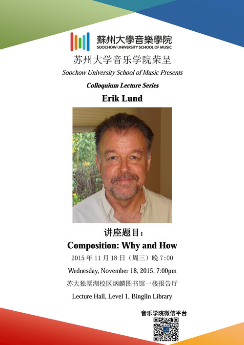 Erik Lund is professor of music composition at the University of Illinois, a composer of acoustic and electroacoustic music, and an active performer of both composed and improvised music. He composes music as analogies, commentaries, and meditations on aspects of the world in which we live. As such, his works are usually born of ideas and sources that are not inherently musical in nature, where he takes as his task the process of transformation into the sonic domain. The result has been music which has been described as “dramatic and gripping” (Martin Adams, Irish Times).