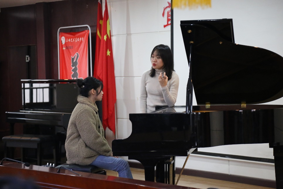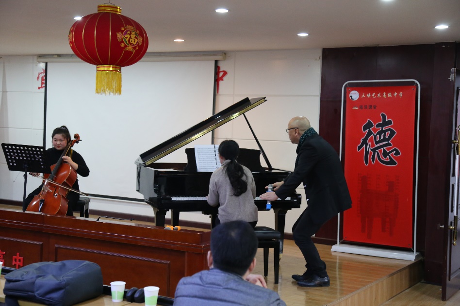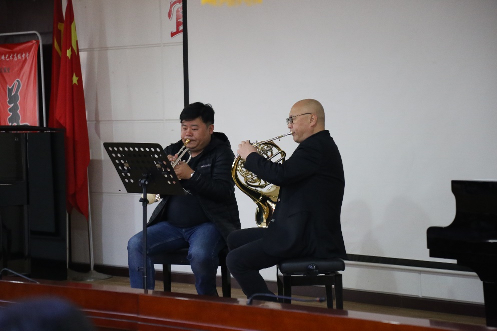 会后,成人a片 管弦系主任魏正启教授与成人a片 交响乐团常务副团长刘晶晶老师为全校师生演绎了Arthur Frackenpohl的小号与圆号二重组曲中的《蓝调》和《波萨诺瓦》,苏莹莹老师为全校师生演奏了钢琴曲《魔王》(舒伯特-李斯特),获得全场师生的热烈掌声。同时,三位老师也为宜昌市人文艺术高中的学子带来了精彩的大师课。