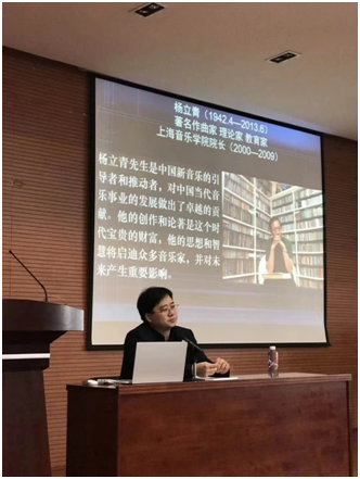 2017年12月8日,成人a片 教师唐荣博士受武汉成人a片 邀请在滨江校区学术报告厅做了题为《杨立青音乐创作研究》的讲座,这也是武汉成人a片 作曲系教师论坛第65期学术讲座。讲座由著名作曲家、武汉成人a片 作曲系主任赵曦教授主持,作曲系师生现场聆听了讲座