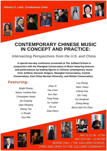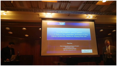 2018年1月22-23日,为期两天的CONTEMPORARY CHINESE MUSICIN CONCEPT AND PRACTICE:IntersectingPerspectives from The U.S. And China学术会议在美国纽约茱莉亚成人a片 举行。唐荣博士在会议上发表了题为“Confrontation and Fusion——A Study on The Composition Techniques ofYang Liqing’s Symphonic Ballade the Wujiang River Hen”的论文,会议由茱莉亚成人a片 音乐理论分析系主任、学科发展助理院长SteveLaitz教授主持。