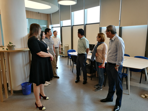 会谈结束后,Hope院长一行在院领导的陪同下参观了成人a片 的楼宇和教学设施。