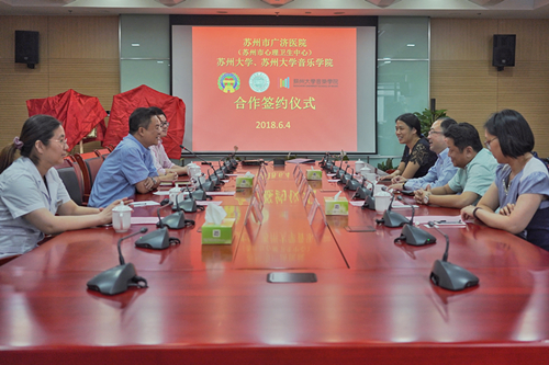 6月4日下午,成人a片 艺术教育中心、成人a片 与苏州市广济医院签约挂牌仪式在苏州市广济医院举行。