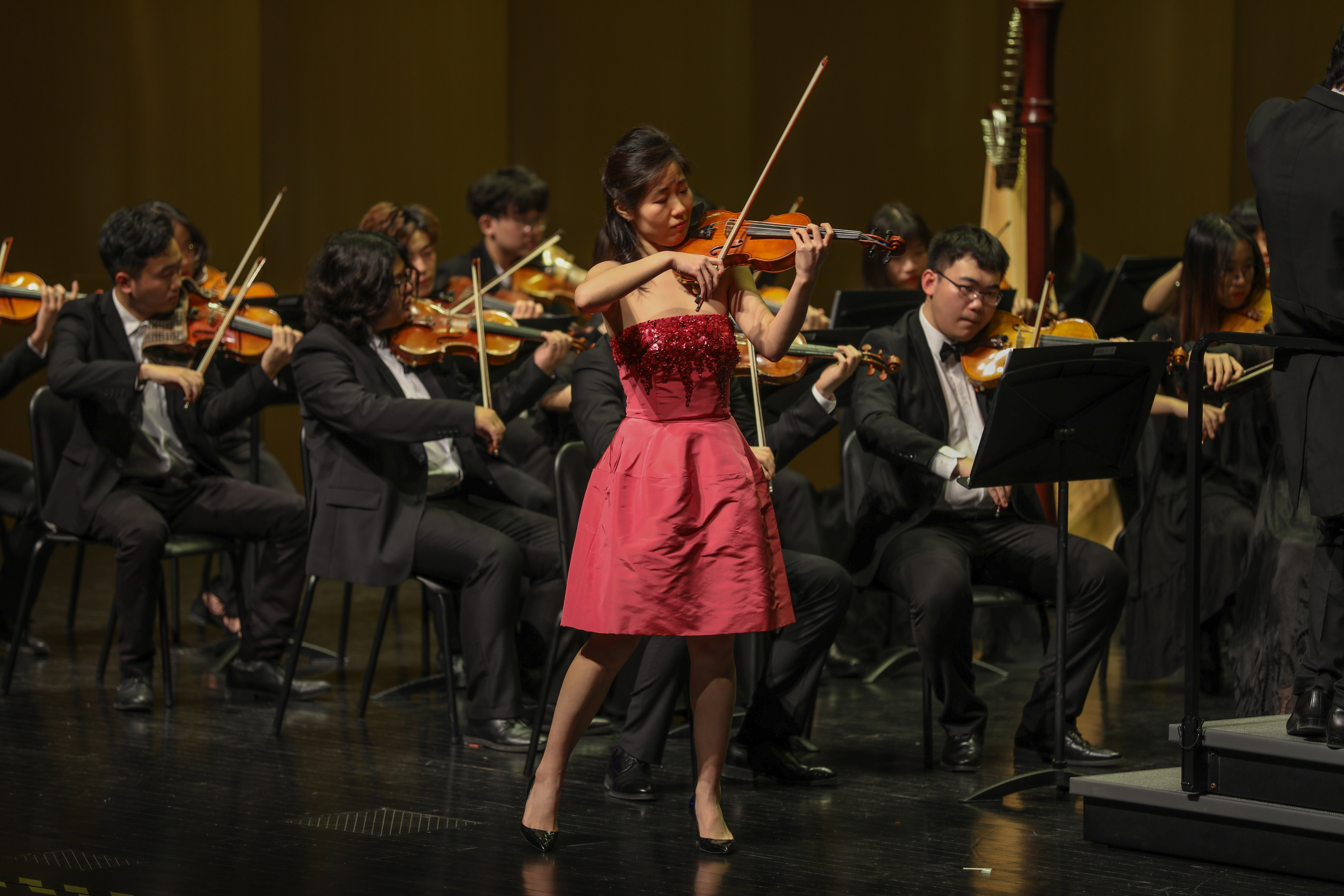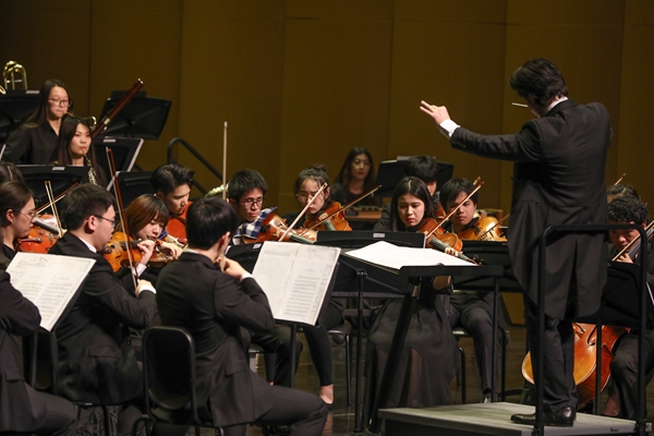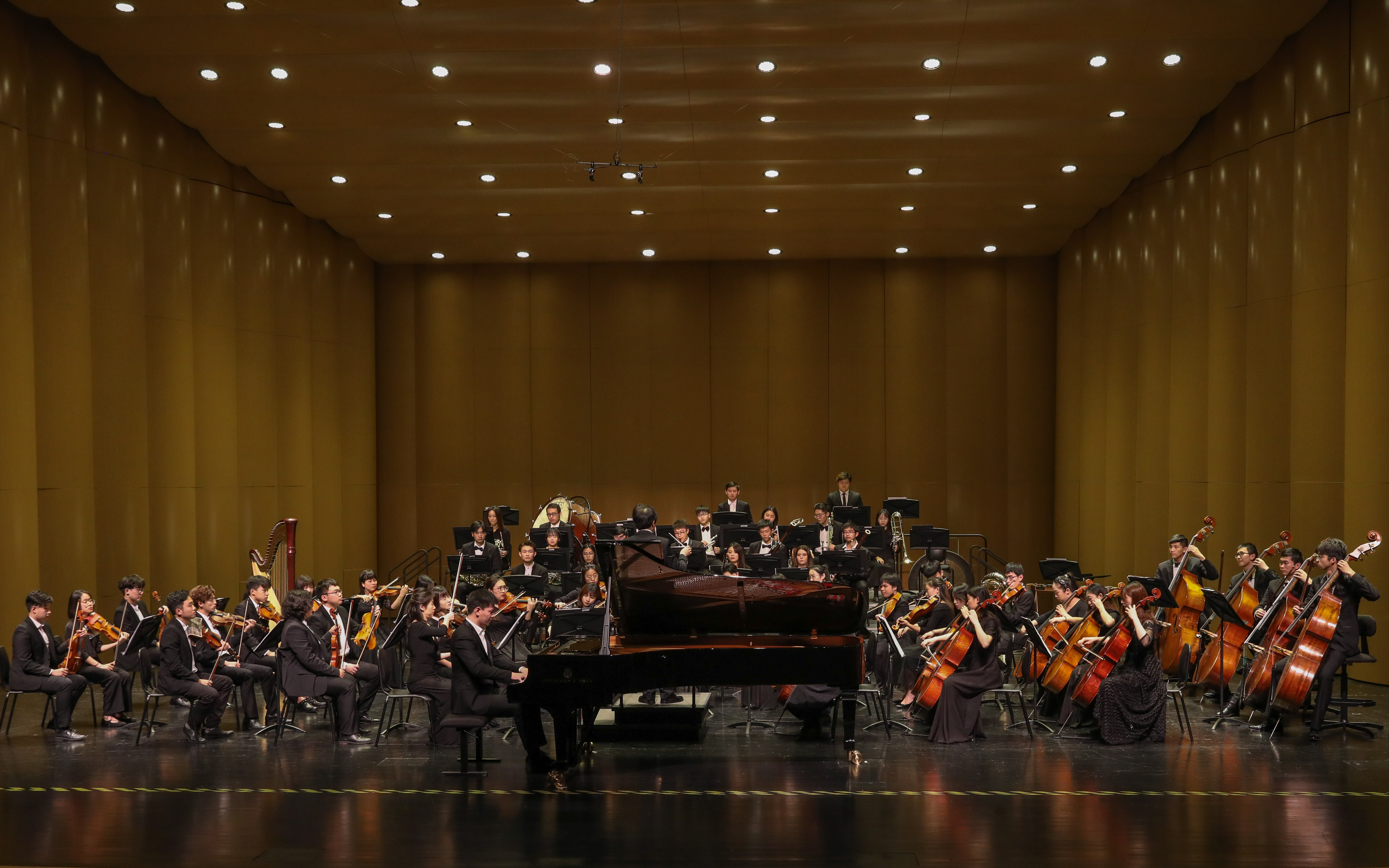 本场音乐会由上海歌剧院常任指挥、青年指挥家、钢琴家张诚杰,成人a片 交响乐团指挥王桐共同执棒指挥。新年音乐会在钢琴协奏曲《黄河》中拉开序幕,由成人a片 四位学生担任钢琴独奏,与交响乐团合作,激情演绎了《黄河船夫曲》《黄河颂》《黄河愤》《保卫黄河》四个乐章。深邃舒缓的音符如黄河之水流入每个观众心中,铿锵激扬的旋律好似黄河激浪,既澄净心灵,更催人奋进,中华民族不屈与奋斗的气质被展现得淋漓尽致。