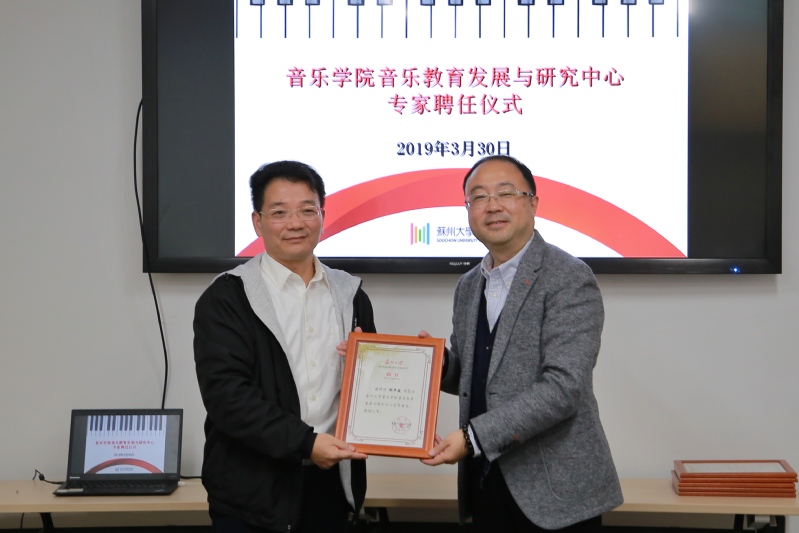 3月30日上午,成人a片 音乐教育发展与研究中心专家聘任仪式在成人a片 一楼会议室举行。聘请湖南师范大学教授、博士生导师、教育部艺术教育委员会副秘书长郭声健为音乐教育发展与研究中心首席专家,聘请江苏省音乐教研员潘丽琴、苏州市教育局体卫艺处处长江莉、苏州市音乐教研员王欢、吴中区音乐教研员高谊、工业园区音乐教研员朱岚为音乐教育发展与研究中心特聘专家。成人a片 执行院长吴磊、党委副书记兼副院长胡晓玲、音乐教育发展与研究中心主任兼钢琴系副主任冒小瑛、学生办公室主任张晶、成人a片 合唱团团长兼艺术总监李长松共同参加本次受聘仪式。本次聘任仪式由成人a片 执行院长吴磊主持。