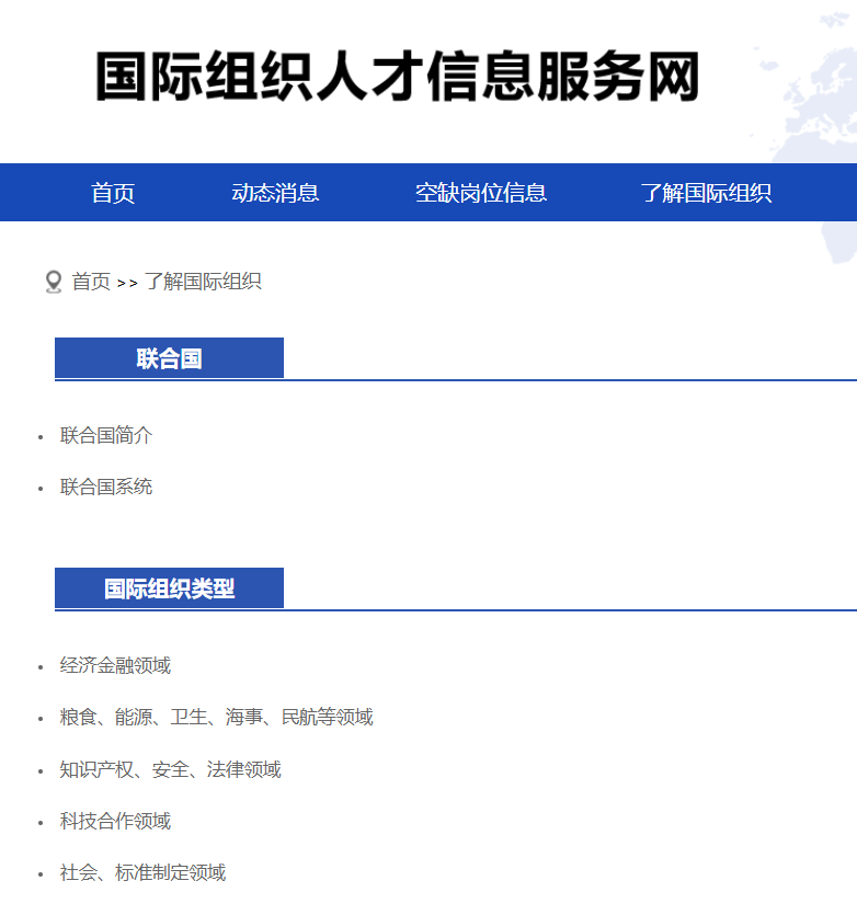 关于国际组织的认定,可参阅《教育部关于促进普通高校毕业生到国际组织实习工作的通知》(教学[2017]6号)、人力资源和社会保障部国际组织人才服务信息网的“了解国际组织”栏目,网站链接://io.mohrss.gov.cn/col/1002/index.html,